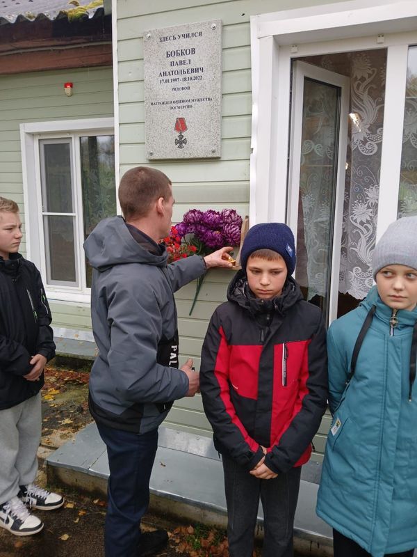 17 октября прошел торждественный митинг, посвященный памяти погибшего при выполнении боевого задания в зоне специальной военной операции Бобкова Павла. Ученики и учителя бережно хранят память о выпускнике школы. Три года назад была открыта мемориальная доска памяти Бобкова Павла, участника СВО. Ежегодно в день гибели все, кто знал Павла, собираются у мемориальной доски, чтобы вспомнить его короткую, но яркую жизнь. Учителя и ученики, родственники и приглашенные гости почтили его подвиг минутой молчания, возложили цветы к мемориальной доске и поделились воспоминаниями о его доброте и мужестве. В завершение митинга прозвучали стихи о героизме российских воинов.