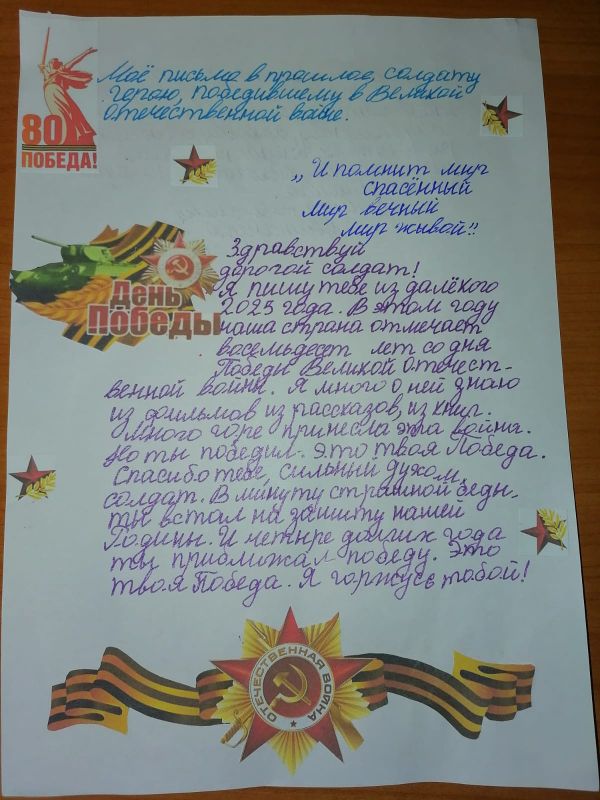 В своих письмах они выражают глубокую признательность и благодарность за Великую Победу, мужество, стойкость и преданность своей Родине.