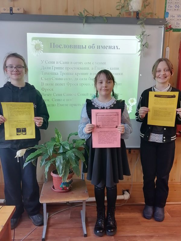В рамках проекта «Добротолюбие» в 3-4 классах прошло занятие по теме «Тайна имени твоего». Учащиеся беседовали о значении имени в судьбе человека, о происхождении имени и его влиянии на поступки и характер носителя. Также дети создавали флаг и герб своего имени.
