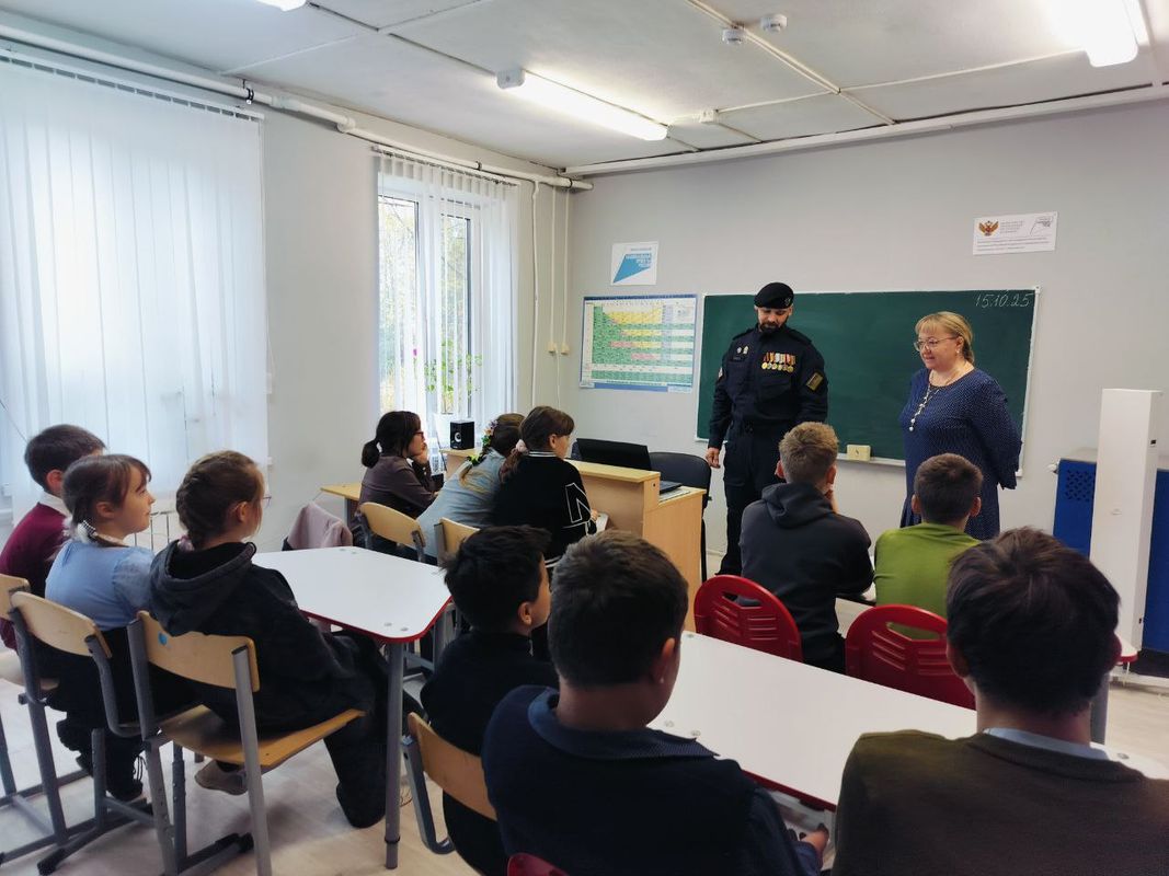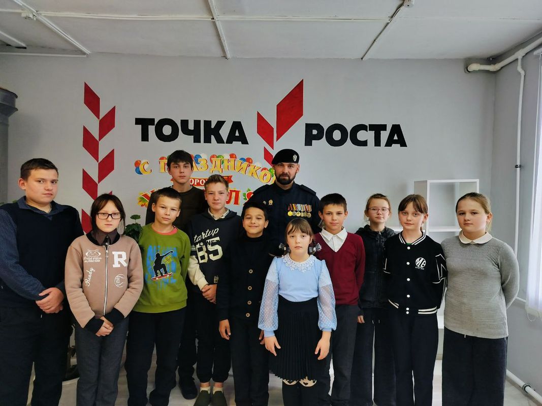 В рамках мероприятий, посвящённых Году защитника Отечества, в нашей школе прошла встреча педагогов и учащихся с участником специальной военной операции с Сорокиным В.М.