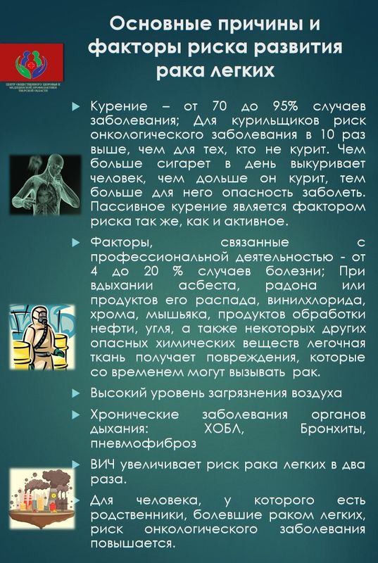 Среди злокачественных новообразований рак лёгких занимает лидирующие позиции в мире, как по распространённости, так и по смертности. Мужчины болеют в 6 раз чаще, чем женщины.