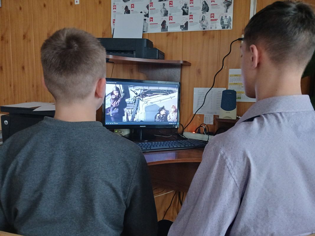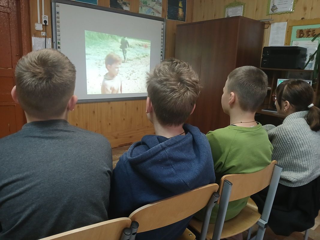 Ребята 8-9 классов смотрели "Юнга Северного флота" - фильм о действительно существовавшей в годы Великой Отечественной войны военно-морской школе для несовершеннолетних мальчишек-сирот, размещенной в стенах Соловецкого монастыря, на островах студеного Белого моря.