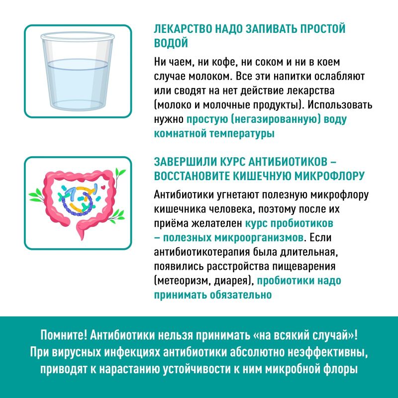 - не принимайте антибиотики без назначения врача! Очень часто антибиотики начинают принимать неоправданно, в частности, при вирусных инфекциях. Однозначно заявляем: в этих случаях антибиотики неэффективны, а приводят к развитию резистентных штаммов.
