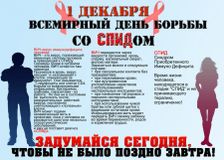1 декабря 2021 г. мировое сообщество в 33-й раз отмечает День борьбы со СПИДом, посвященный актуальным мерам противодействия ВИЧ-инфекции. Во всем мире в 2021 году - Всемирный день борьбы со СПИДом (1 декабря) проводится под лозунгом «Ликвидировать неравенство. Покончить со СПИДом. Прекратить пандемии» и девизом «Меры, необходимые для победы над СПИДом, также помогут остановить будущие пандемии».