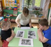 Вспомнили с детьми, какие произведения Л.Н.Толстого они знают («Филипок», «Лев и собачка», «Три медведя»).