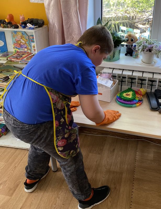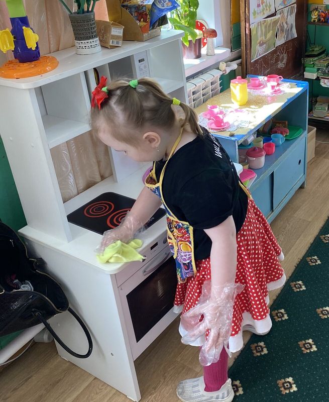 Научили детей правильно вытирать пыль с разных поверхностей, использовали влажные тряпочки, объяснили почему важно удалять пыль, что пыль вредна для дыхания человека.